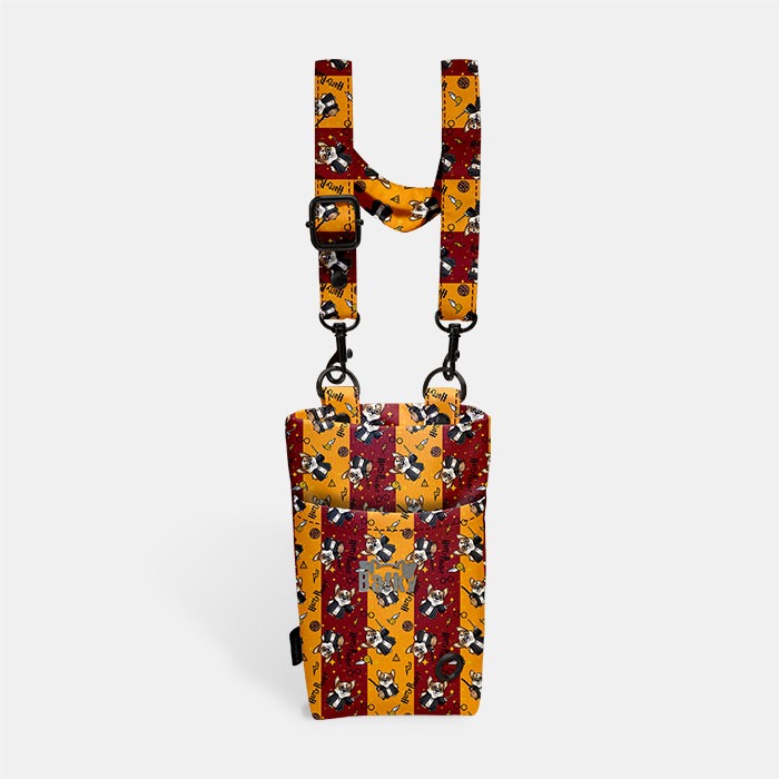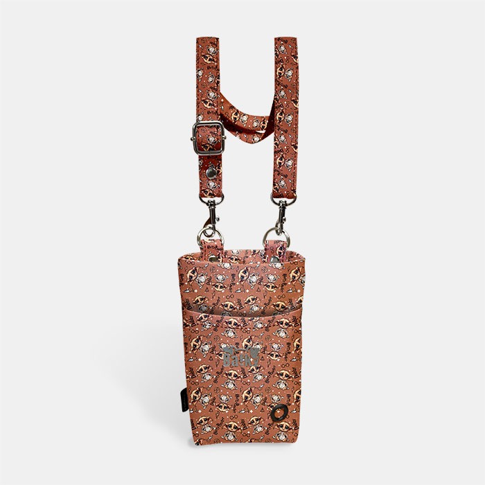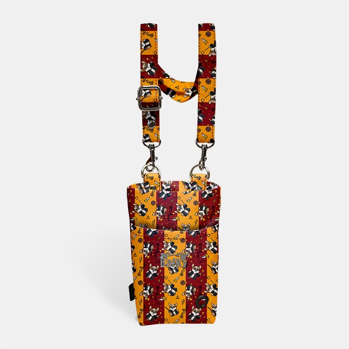 Túto krásnu taštičku na pamlsky si jednoducho prevesíš cez rameno vďaka odnímateľnému popruhu s nastaviteľnou dĺžkou a dvoma karabinkami. Môžeš si ho pripnúť aj na opasok alebo freehands vôdzku vďaka dvom pútkam umiestneným na zadnej strane pamlskovníka. Obsahuje aj menšie predné vrecko s otvorom na prevlečenie sáčkov, takže na prechádzke budeš mať všetko podstatné po ruke. Vo vnútri sa ukrýva PVC vrecko, ktoré môžeš vybrať a ľahko umyť mokrým obrúskom, alebo pod tečúcou vodou.