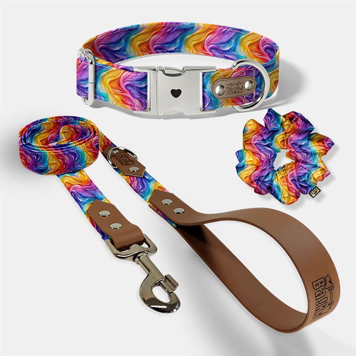 Tento štýlový set je perfektným výberom pre každú dogmom, ktorá chce, aby jej psík aj ona vyzerali skvele na každej prechádzke. Set obsahuje kvalitný obojok, elegantnú vôdzku Extra a roztomilú scrunchie gumičku pre paničku.