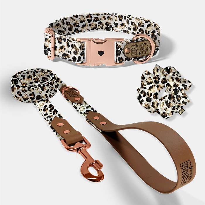 Tento štýlový set je perfektným výberom pre každú dogmom, ktorá chce, aby jej psík aj ona vyzerali skvele na každej prechádzke. Set obsahuje kvalitný obojok, elegantnú vôdzku Extra a roztomilú scrunchie gumičku pre paničku.