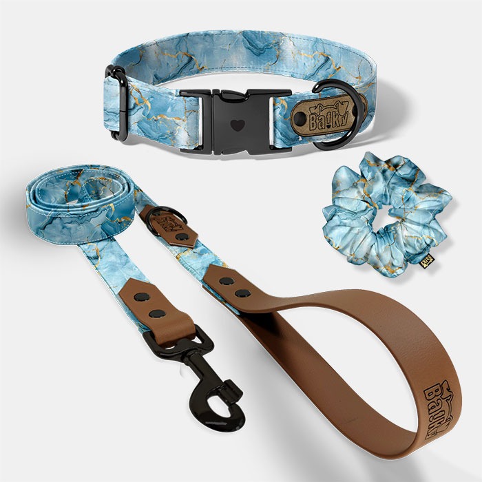 Sila v pohybe. Sky blue mramor pôsobí ako zamrznutá energia – čistá, silná, nezastaviteľná. Pawforce je pre psov, ktorí nejdú na prechádzku, oni idú na misiu.
